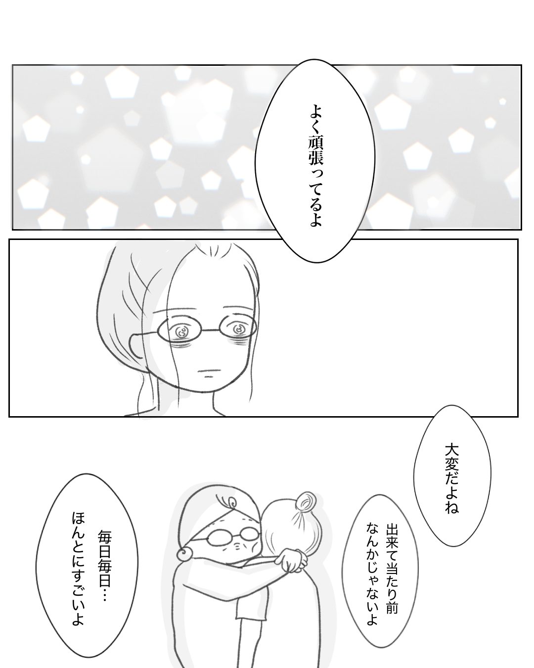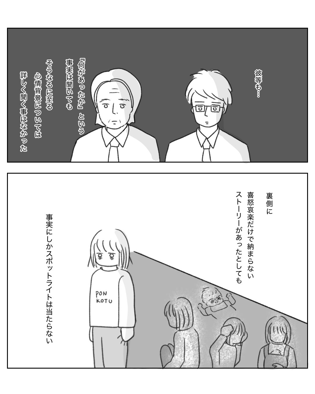 漫画の中で今の自分が過去の自分に言うシーンは、私へ向けてだけではなく、今どうしてもつらい状況にある方へ向けても描きました。